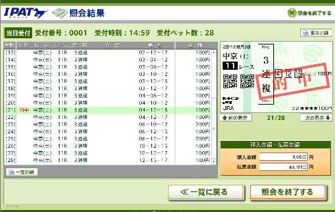 1 ロックドゥカンブ を軸に設定し、馬単総流しにて勝負(^0^)V